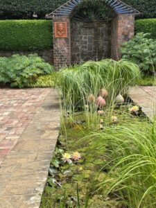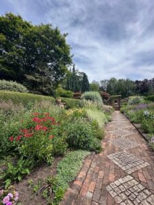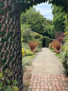 Walking around this paradise I’m struck by the design elements- terraces, architectural structures, sculptures, urns, the open space of the theatre lawn, and the tightly clipped topiary and choreographed landscaping of the more formal areas. There are places to sit, breathe and notice the detailed colour palette of the borders. It’s designed but not over designed. There are wild meadows and narrow untamed walkways that provide a sense of exploration- I wonder what’s around this corner?