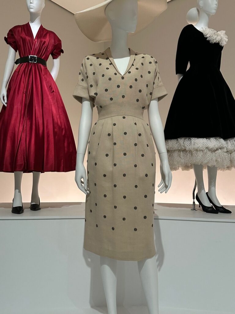 Wandering the exhibition of beautiful gowns and exquisite fabric and colour choices I remembered the feel of his clothes as much as their shape and design. There was a story behind each piece. If you were lucky enough to own a Dior dress or suit you stepped into a new age for fashion but also a new age for women. There was classic elegance but no timidity in the designs.